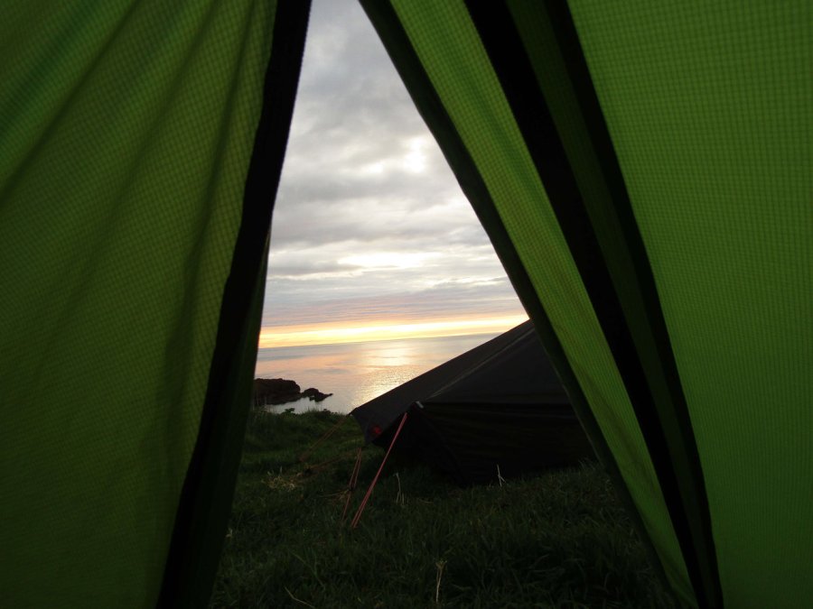 The rest of the evening was fairly short due to arriving so late, having walked for probably 12 hours that day. The bottle of wine was finished pretty quickly, enjoyed what was left of the sunset (although it was an overcast evening and there wasn’t much of one). Retiring to the tent, I checked the guylines were prepped for a heavy night and set an alarm for 5am. We were damned well getting up for sunrise no matter how tired we felt right now.