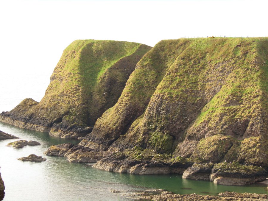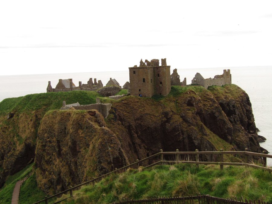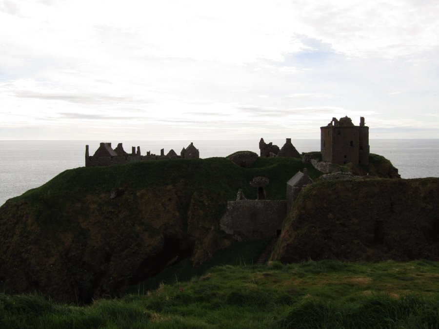 Stonehaven isn’t the best place for ‘easy access’ to the water, however, and we ended up walking in the rain as dusk approached, taking the coastal path to Dunnottar Castle, our stated ‘end-point’. There were a few evening runners about and the odd couple having a leisurely walk with their waterproofs on, but we were determined to make it, still in the base layer with water running down our faces. The feet were burning from so much walking on hard tracks and roads (about 38km today), we were likely a little sunburned, but this close to the finish we were prepared to set up in the dark if necessary.