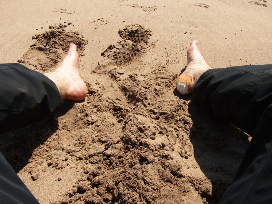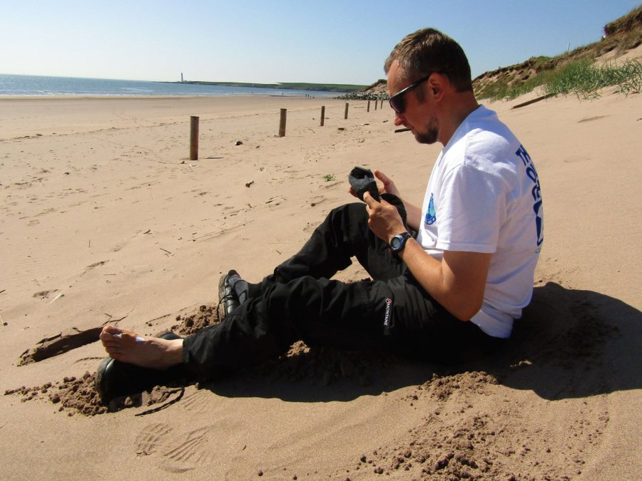 Thank you for reading, I’ve thoroughly enjoyed writing it. It was hard not to grin whilst writing some of the days, from the absurdity of Gabe’s pulled calf muscle on the first morning, to flu, injury, friends made, painful feet, beautiful fells, massive days, 22-hours of non-stop hiking, too much porridge, an almost missed resupply box, four days of limping …. everything, really. I’ll leave you with a sequence of pictures from the Wednesday before we left Scotland as we ambled along the beach barefoot, laid on the sand and soaked up the sun – feeling we had given ourselves a Challenge to remember.