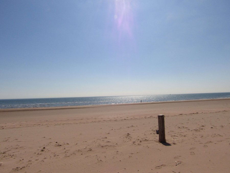 Our first view of the sea. Including wind farm blade and debris strewn path for extra flavour.