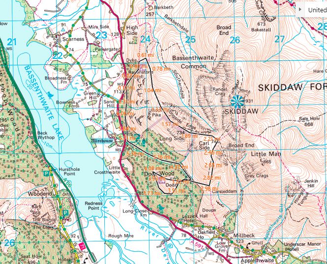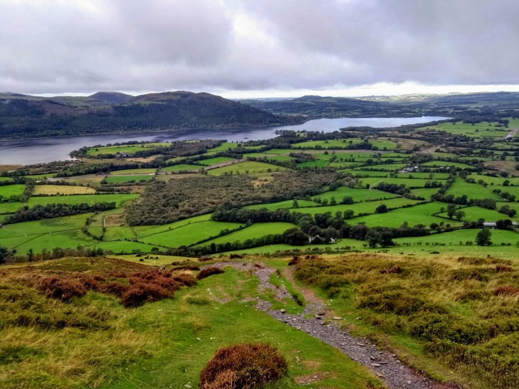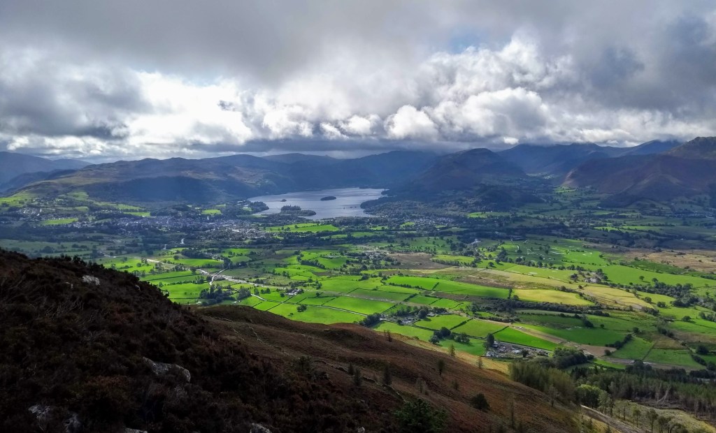Looking back to the path taken, and Derwentwater and Keswick in the background