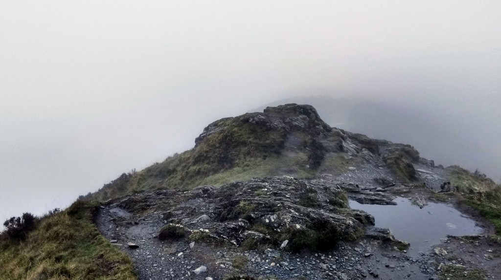 Upon reaching Ling How the wind was really blowing in from the west to the point where I was close to losing the hat off my head and it necessitated throwing another layer on as well as battoning down the hatches by tightening up my hood as far as it’d go. Unfortunately it started getting claggy at this point so most of the views became rather hazy. Longside Edge is quite characterful mind you, just not on those wet and windy days where you don’t get to amble around enjoying the views and instead put your head down and crack on!