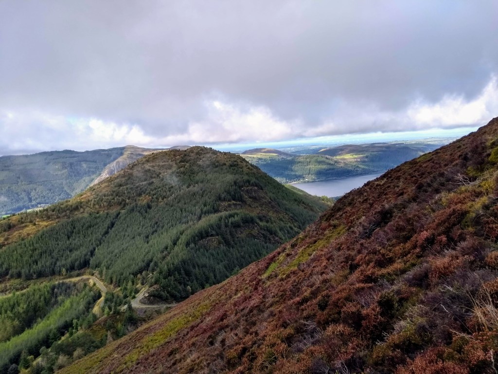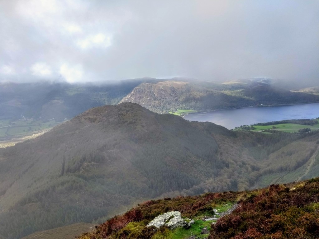 The bottom of the valley brought a respite from the weather and with almost perfect timing the sun came out as I headed towards Dodd, a pokey little fell hidden in the woods but at this point a far better plan, well protected from the wind. Dodd itself proved itself a brilliant little route and the view from the summit (well, a little mound at the top) provided a lovely view across Bassenthwaite, in my opinion on-par with the view from Barf on the other side (itself a much steeper climb and prone to waterlogging).