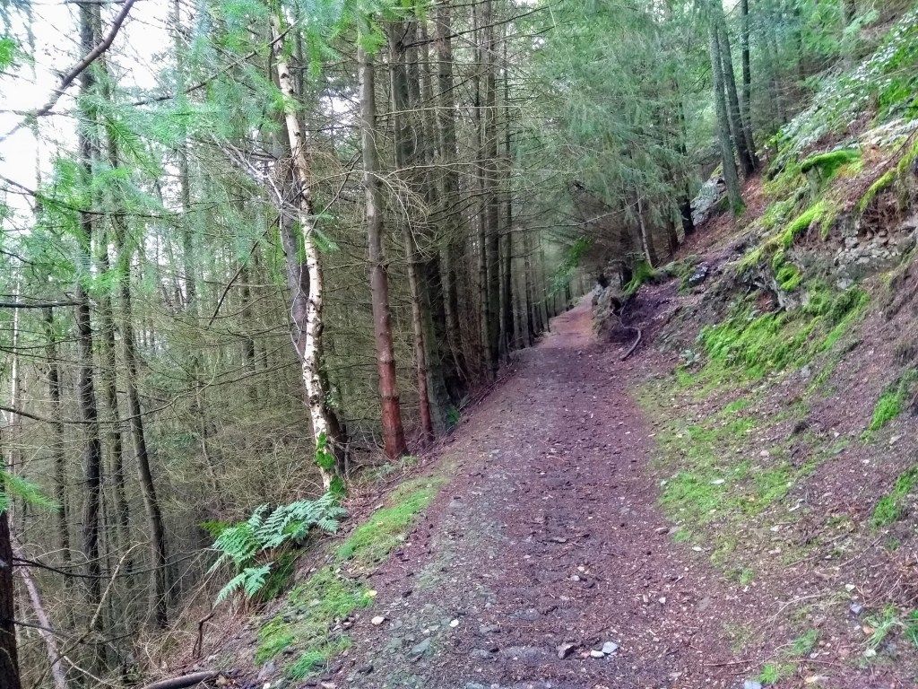The morning brought a decent forecast for the day but an overcast, windy morning – and pulling on my boots in a small roadside car park close to the Ravenstone Hotel it was looking promising. The route began up the forest path to the start of ‘The Edge’, the named ridge which heads up to Ullock Pike.