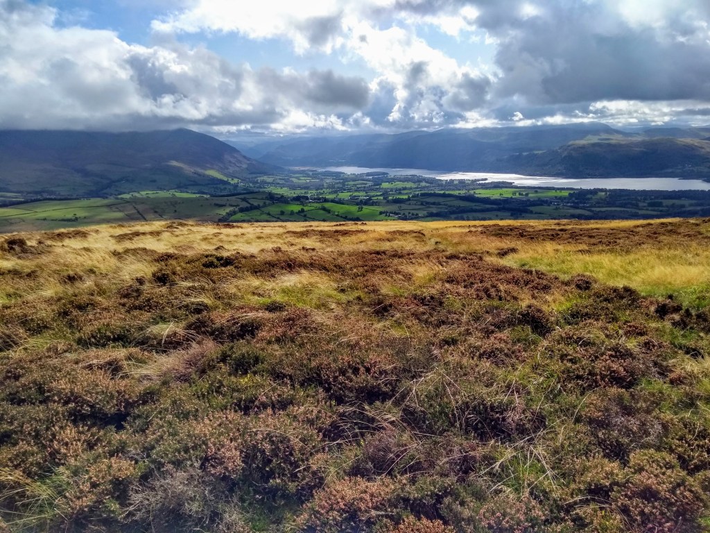 High Pike and Carrock Fell in the distance, Bowfell in the mid distance with Bannerdale Crags just visible to the right